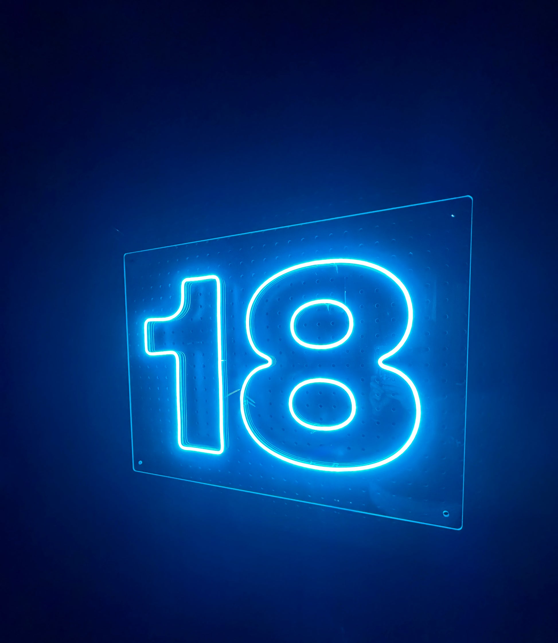 Legally we can't tell you all the things that this huge ice blue neon 18 number sign implies, but what we can tell you is that it will look awesome in the selfies you take with it. W800 x H750mm