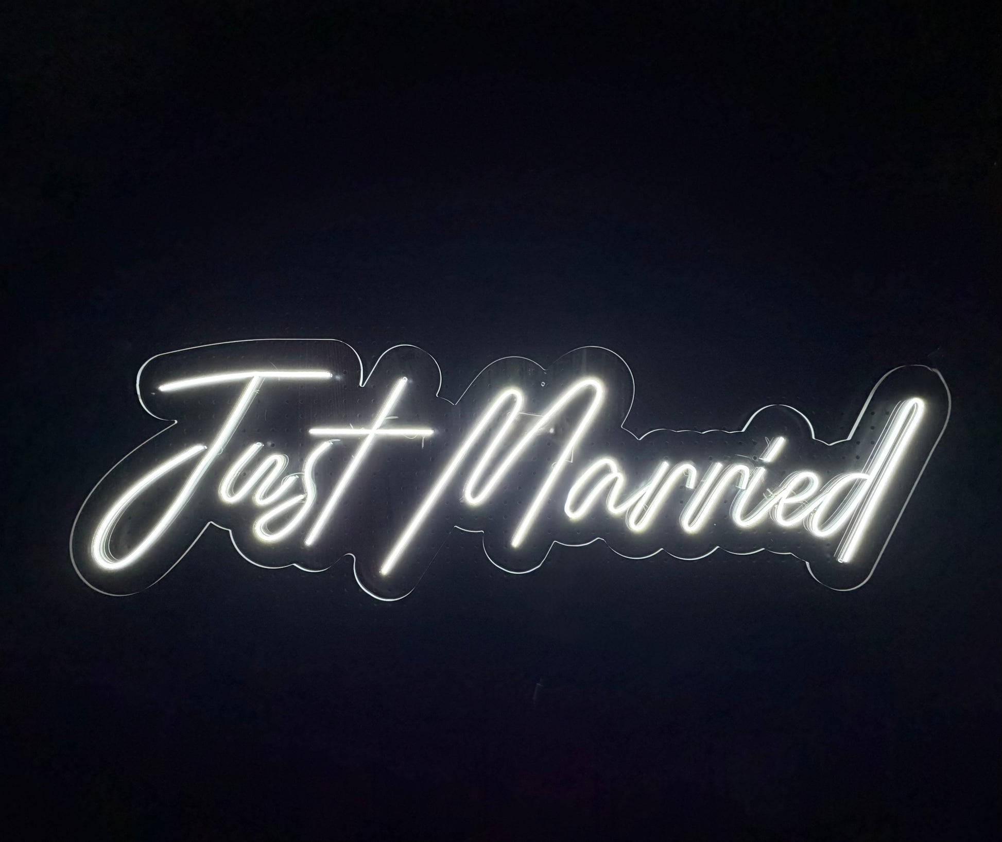 Wedding cake, celebrant, invites are all just formalities. The true sign of matrimony is a huge white cursive neon that says Just Married. This elegant and fun sign will 'wow' your guests and add an element of playfulness to your big day. W1480 x H440mm If you're not satisfied with just one such sign, we recommend a look at our wedding selection, starting with Till Death Do Us Party - because we know you're serious about your nuptials.